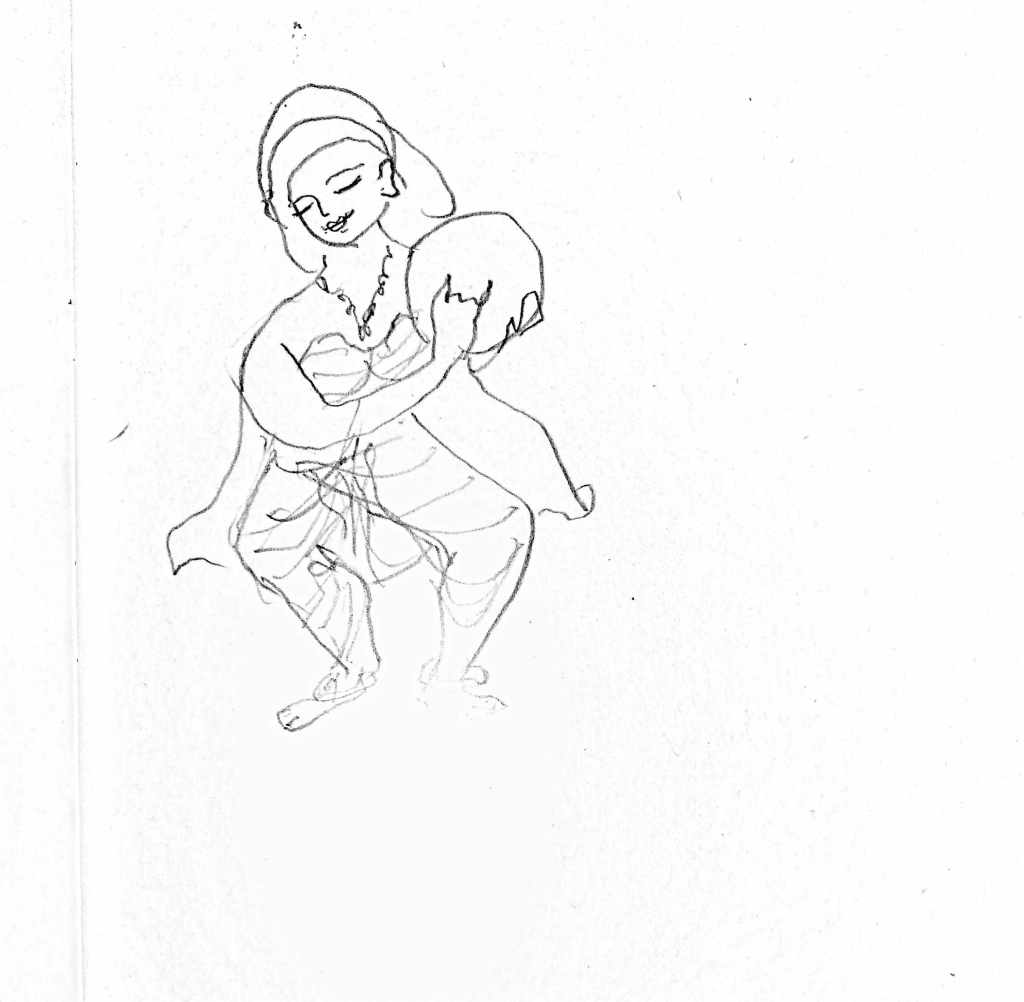 The littlest princess said, “I would like to tell a story about a Gandharva and an apsari who played beautiful music and danced so well and came to teach us.”