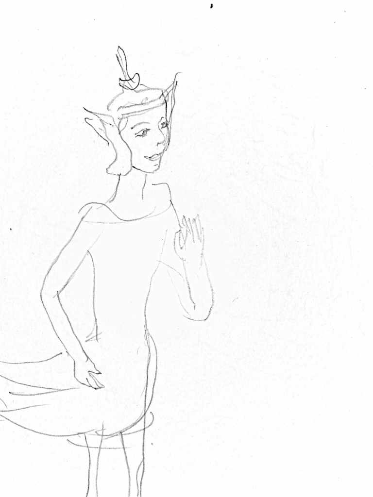 When he was not busy being a king he loved to look at the moon and the stars and the sky and the clouds. He built a tower so he could be nearer the sky. One day, he was up on the tower when a cloud of Kinnaris floated by.