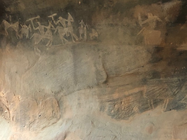 An aside before I leave, why is it called Bhimbhetka? Well, we know Bhim is giant strongman of the Pandava brothers from the epic Mahabharata. These caves are large enough for him to use as a sitting room. You can imagine him sitting there, and inviting you to join him, pointing out the paintings in which he is hunting or dancing with great vim and vigor. (Yes, Bhim and Vim mean the same thing. You can look up the etymology too.)